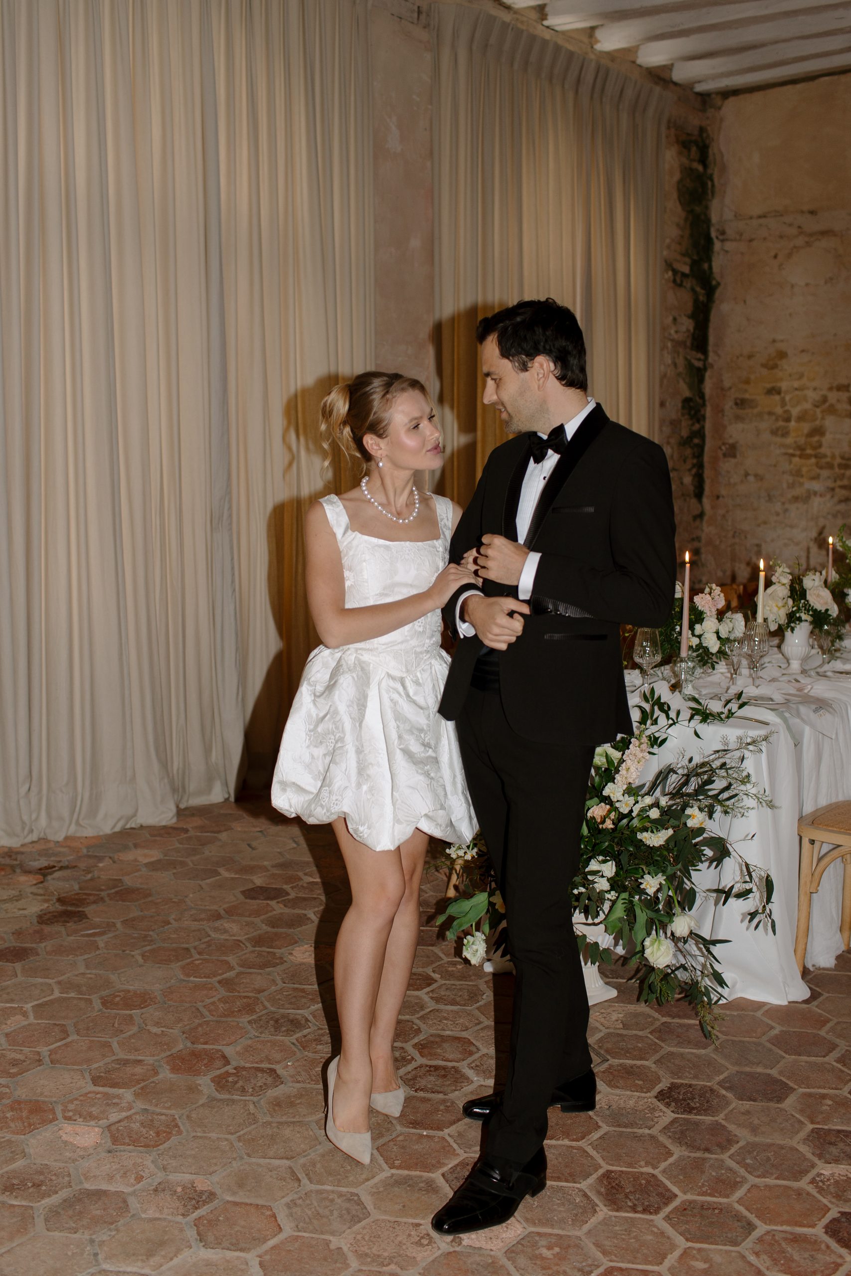 This editorial shoot in Normandy, France brought together simple, refined design with the natural charm of a French château. The historic stone architecture, tall windows, and soft daylight created the perfect backdrop for a modern French wedding without feeling overly traditional.