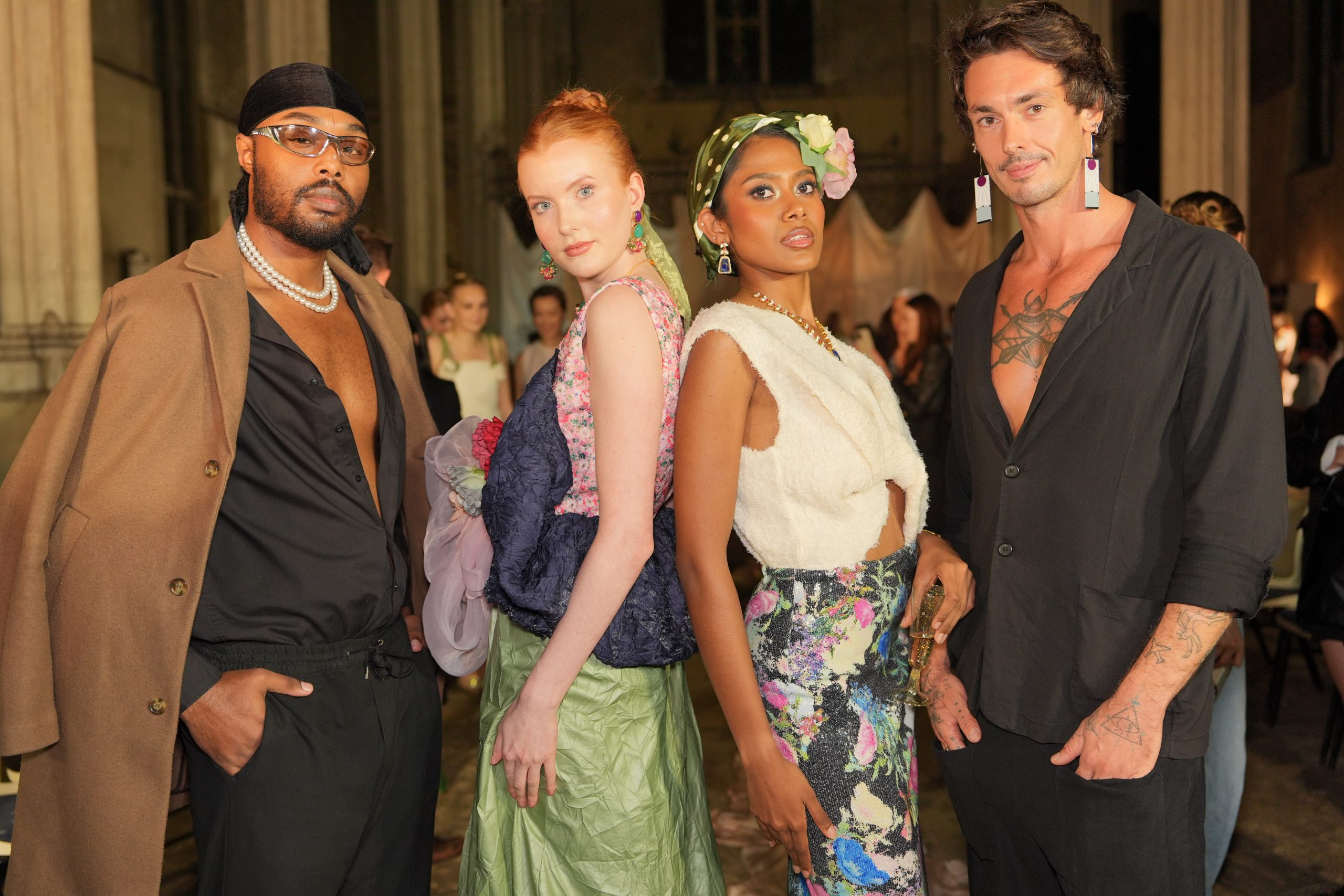 We drew inspiration from the collection’s bold colours and floral motifs, aiming to create an untamed botanical garden feel. This collection was influenced by Pippa’s love of the 60s and 70s, and we wanted to reflect that bohemian spirit in our design. Against the dramatic backdrop of the HAC, our installations played with contrast - juxtaposing the venue’s raw, historic grandeur with the collection’s lush, free-spirited energy.